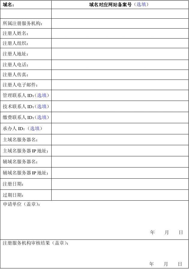 域名注冊申請表2、因以上信息不真實、不準(zhǔn)確、不完整造成的一切的法律責(zé)任,由申請單位承擔(dān)。3、如同一用戶注冊多個域名,請附域名及對應(yīng)網(wǎng)站備案號的列表并加蓋申請用戶公章,同時附電子版表格。第 1 頁 共