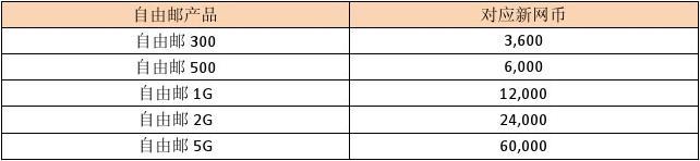 1、 自由郵產(chǎn)品規(guī)格仍為五款,對應(yīng)新網(wǎng)幣數(shù)量及新網(wǎng)幣有效期不變,具體規(guī)格如下所示: