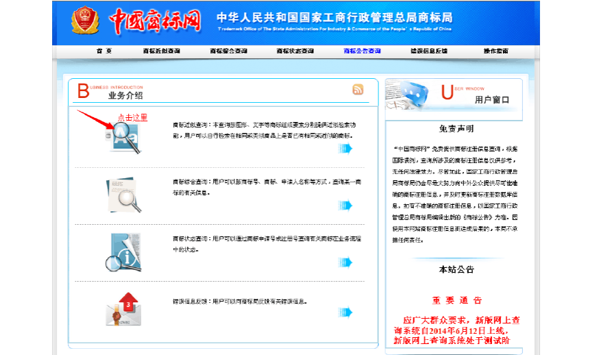 登錄國(guó)家工商總局商標(biāo)局網(wǎng)站,http://sbj.saic.gov.cn/sbsq/sqzn/ ,查詢網(wǎng)名是否被注冊(cè)過(guò)商標(biāo),前一例子“美麗”。點(diǎn)擊“商標(biāo)查詢”,如下圖: