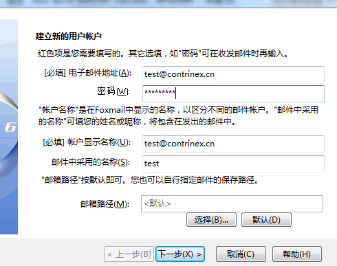 test@contrinex.cn只是一個(gè)測(cè)試帳號(hào),實(shí)際設(shè)置時(shí)請(qǐng)?zhí)钊胱约旱泥]箱地址和密碼