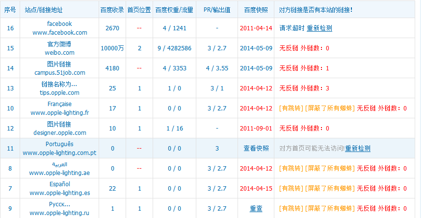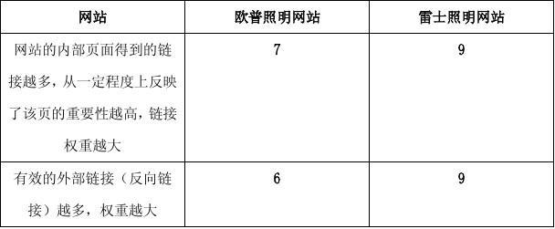 分析:歐普照明網(wǎng)站內(nèi)部鏈接比較多,相比之下雷士照明網(wǎng)站內(nèi)較少一些。而有效的外部