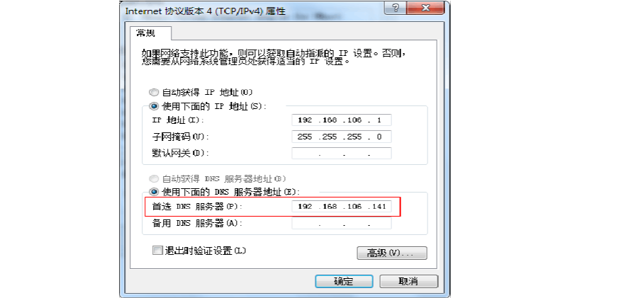 這里需要注意的是在途中接收郵件服務(wù)器中若要填寫再記配置的域名:mail.kk.com ;則要么將網(wǎng)絡(luò)連接中的首選DNS 配置為郵件服務(wù)器系統(tǒng)的IP 地址,如圖:
