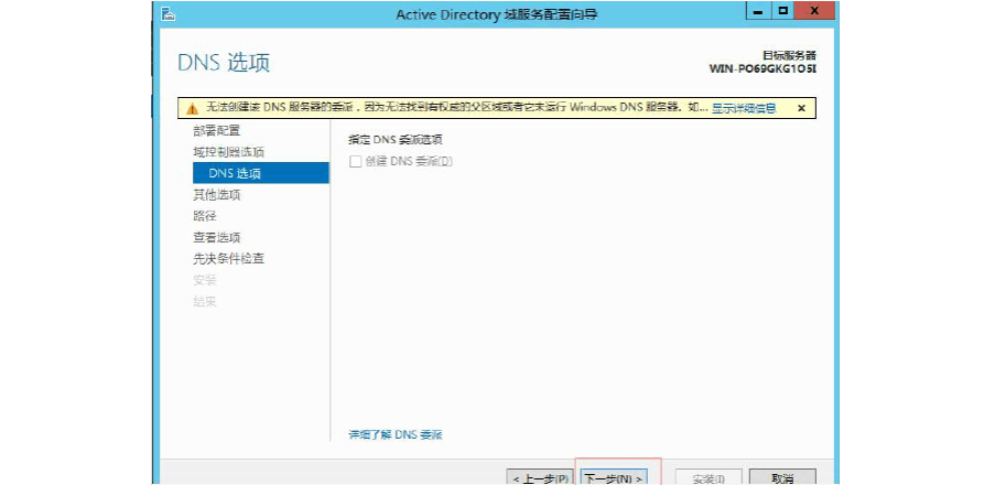 12.沒(méi)有創(chuàng)建DNS 服務(wù)器所以這一步省略,直接下一步。