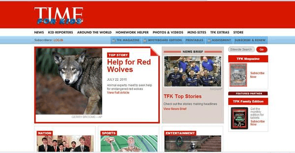 美國《時代》雜志的兒童版網(wǎng)站,內容遍及世界各國時事新聞,并依據(jù)年齡分為K1(5-7歲) ,G2-3(7-10歲) ,G4-6(10-12歲) ,孩子根據(jù)自己的英文程度與喜好閱讀全世界最新鮮的分類資訊,閱讀后還可以做理解測試。是極好的學英文、看世界的平臺。