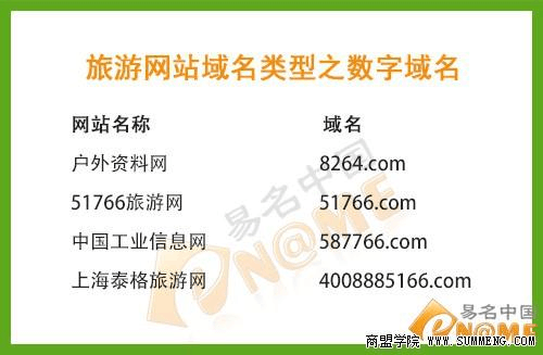 在前50名的旅游類網(wǎng)站中,數(shù)字域名僅占4個,其中,跟“旅”字諧音的數(shù)字“6”最受歡迎,4個數(shù)字域名均有“6”。比如51766旅游網(wǎng)的名稱,跟“我要去旅游”諧音,官網(wǎng)域名域名啟用數(shù)字域名51766.com 。而上海泰格旅游網(wǎng)官網(wǎng)則啟用咨詢熱線電話4008885166作為域名主體。