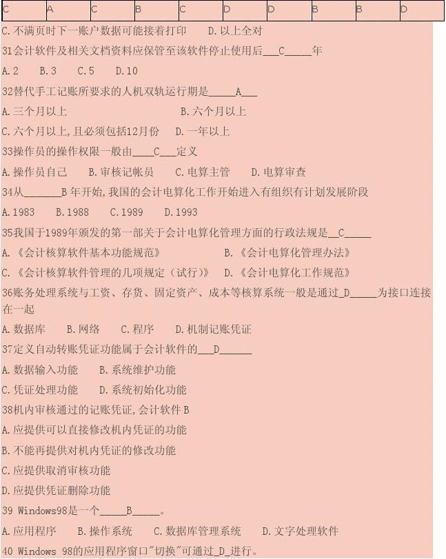 最新改版后杭州會(huì)計(jì)從業(yè)資格考試——會(huì)計(jì)電算化(理論題)(四)(2012-11-15 14:37:14)標(biāo)簽: 2012最新無紙化考試從業(yè)資格證電算化杭州會(huì)計(jì)會(huì)計(jì)考試教育 分類: 會(huì)計(jì)考試這是第四套,也