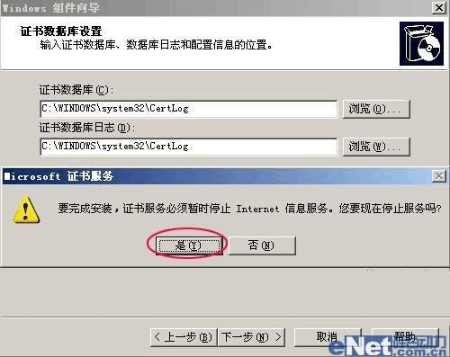 第六步:在安裝服務(wù)的最后系統(tǒng)會提示“要容許證書服務(wù)需要啟用IIS 的ASP 功能”,我們選擇“是”來啟用ASP 。(如圖6)
