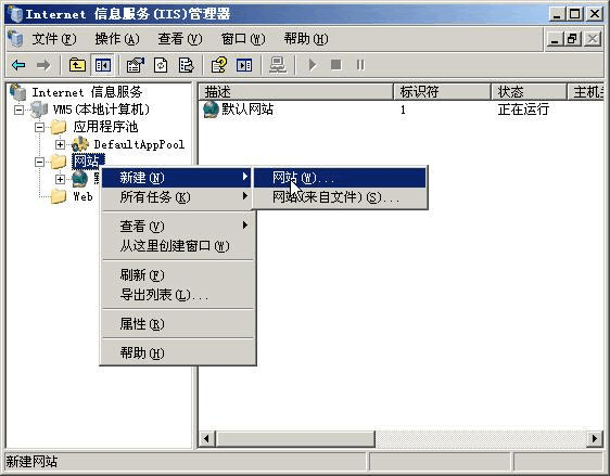 第一步:在IIS 中選擇網(wǎng)站,右鍵單擊選擇“新建網(wǎng)站”。如圖1-9所示