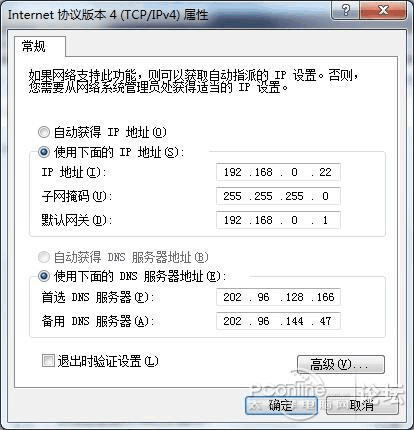 路由器默認(rèn)的設(shè)置IP 是192.168.0.1,所以先將筆記本的網(wǎng)卡IP 地址改成同網(wǎng)段:192.168.0.22,如圖7。