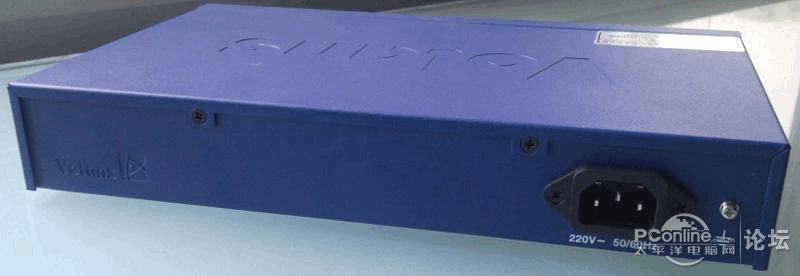 路由器前排一共有5個(gè)RJ45的網(wǎng)絡(luò)接口,從左往右看,依次是W AN1口、WAN2口、WAN3/LAN3口、WAN4/LAN2口、LAN1口,實(shí)際作為VE 系列的最低端型號(hào),該款路由器支持2個(gè)W AN 口和3個(gè)LAN 口,也就是說,第三和第四個(gè)接口在VE982這款型號(hào)上是分別作為L(zhǎng)AN3口和LAN2口使用的。網(wǎng)絡(luò)接口的右邊就是各個(gè)接口相對(duì)應(yīng)的指示燈以及系統(tǒng)、電源指示燈,在指示燈中間還有一個(gè)小小的Reset 按鈕,而路由器的電源接口則在路由器的背面,如圖5。