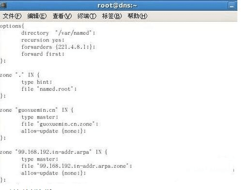 2)主配置文件#var /etc/named.conf