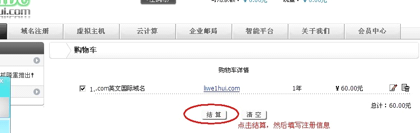 2、域名購買:進(jìn)入會(huì)員中心,點(diǎn)擊: