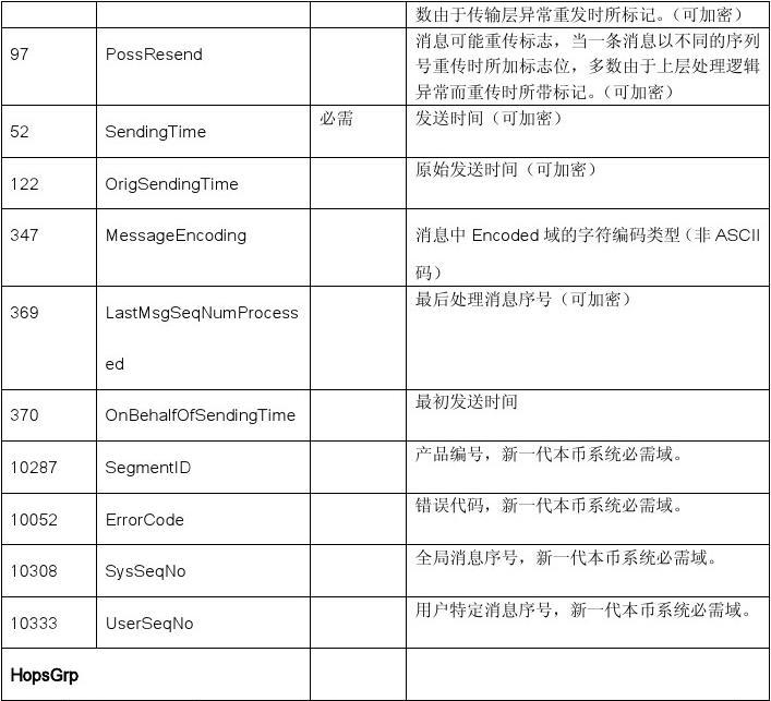 如果重復(fù)組內(nèi)有一個域是必需的,那么第XXX 號(NoXXX )域就應(yīng)當(dāng)是必需的。如果重復(fù)組內(nèi)的所有參與方都是可選擇性的,那么第XXX 號域也應(yīng)當(dāng)是可選擇性的。 如果重復(fù)組的某一個域是必需的,那么在重復(fù)組內(nèi)每次重復(fù)時該域都應(yīng)出現(xiàn)。 通過縮進的符號“→”對消息定義內(nèi)的重復(fù)組進行指定。