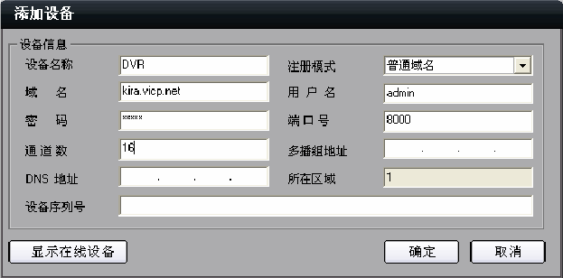 完成需要欄目的填寫后,點擊“確定”可完成設備的添加。