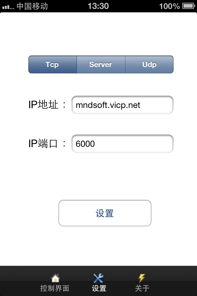 運(yùn)行軟件,在【設(shè)置】選項(xiàng)卡中的IP 地址中輸入域名和端口號(hào)即可,如下圖: