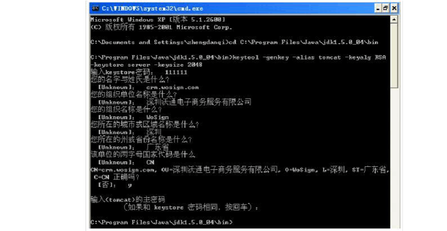 您現(xiàn)在已經(jīng)成功生成了密鑰對(duì),私鑰文件:server 保存在您的服務(wù)器中,請(qǐng)把CSR 文件:request.csr 發(fā)給WoSign 即可。(注釋:此時(shí)兩個(gè)文件默認(rèn)存放路徑在安裝jdk 目錄中的 bin 文件夾中