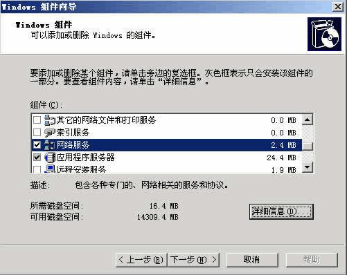 默認(rèn)情況下所有的網(wǎng)絡(luò)服務(wù)都會(huì)被添加,可以點(diǎn)擊下面的“詳細(xì)信息”進(jìn)行自定義安裝,由于在這里只需要DNS ,所以把其它的全都去掉了,以后需要的時(shí)候再安裝: