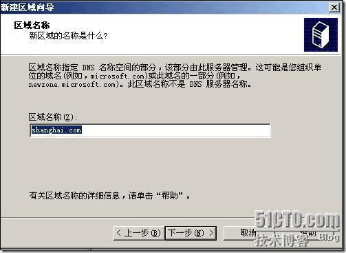 給新建主要正向查找區(qū)域名一個名稱為shanghai.com (符合FQDN ,完全合格域名標(biāo)準(zhǔn),每個FQDN 最多255個字節(jié),254個字節(jié)用于FQDN ,1個字節(jié)用于終止點。這就好比計算機的NetBIOS 名,由16個字節(jié)組成,名字占15個字節(jié),第16個字節(jié)代表某種服務(wù))