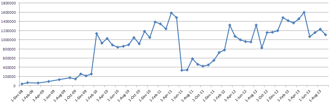 截止至2013.10月 ,5年數(shù)據(jù)各年總和