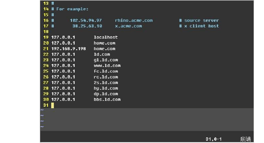 ,在這里將你所要定義的域名以及每個(gè)域名對(duì)應(yīng)的二級(jí)域名的IP 對(duì)應(yīng)組都登記在這個(gè)文件中。 最后重啟apache 就OK 了
