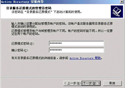 這里是一個重點,還原密碼,希望大家設(shè)置好以后一定要記住這個密碼,千萬別忘記了,因為在后面的關(guān)于活動目錄恢復(fù)的文章上要用到這個密碼的。